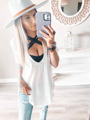 CRISS CROSS DISTRESSED TEE IS WITH THE STRAPS